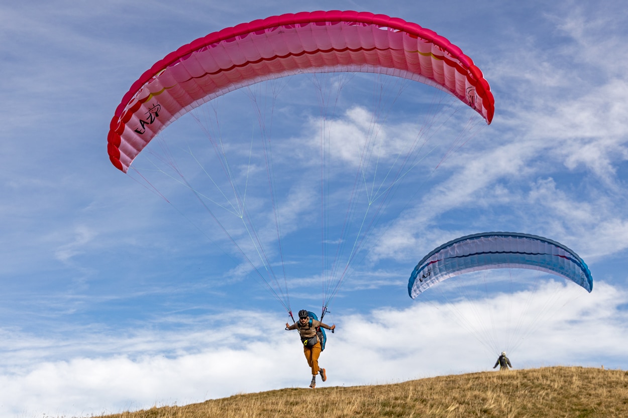 Es una mañana templada en la ladera de escuela, el sol brilla entre las nubes. Paul, instructor de vuelo desde hacer 15 años, observa cómo sus alumnos abren las velas. Sabe perfectamente cómo se sienten en ese momento. Hay una sutil mezcla de emoción y anticipación que acompaña a cada primer vuelo.
