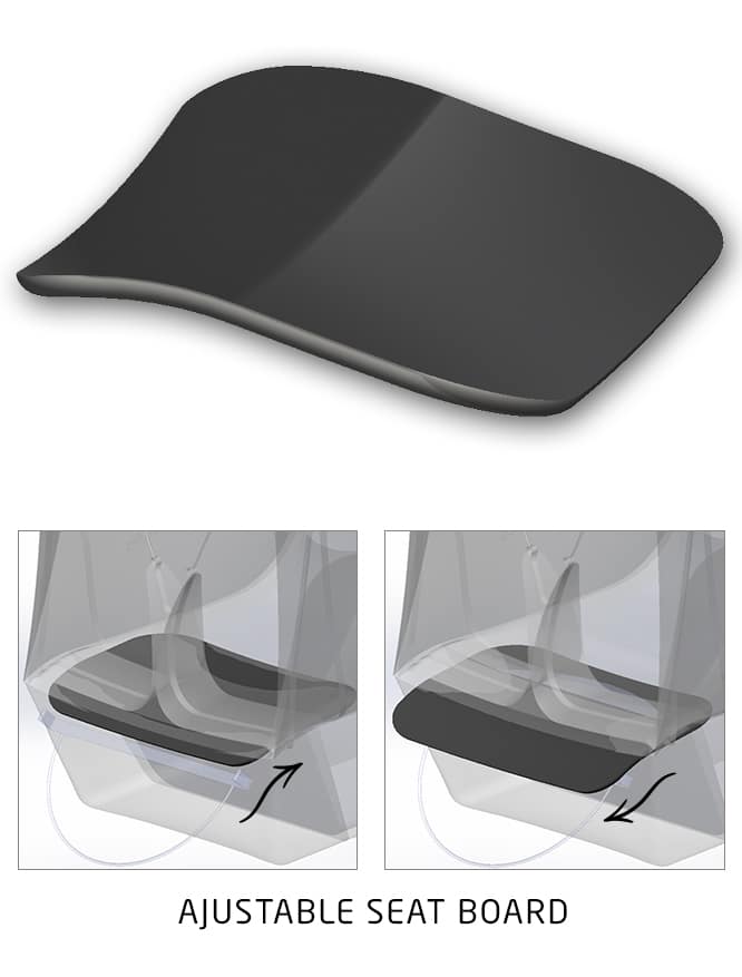 La planchette basculante facilite la transition entre position assise et debout, offrant confort et liberté de mouvement à chaque phase du vol.