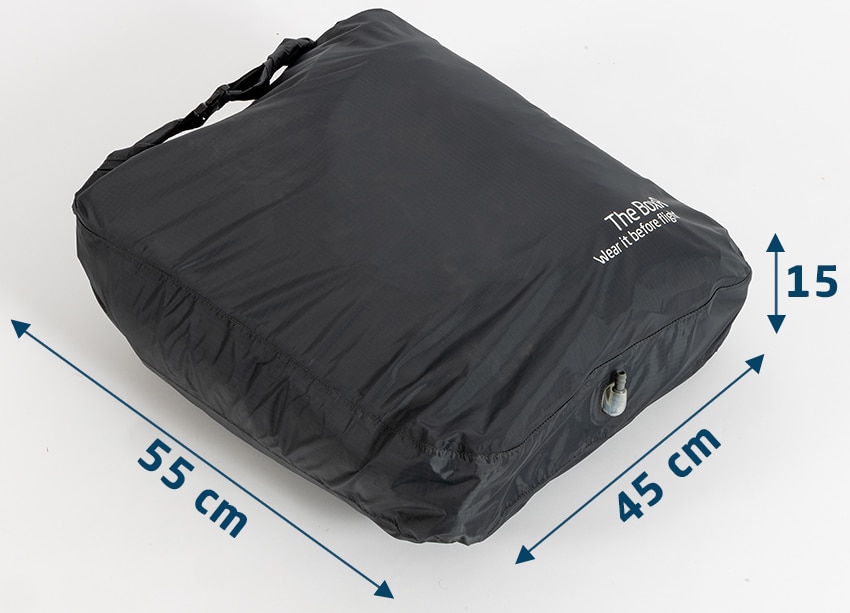 Un sac de rangement est fourni avec ta sellette. Il te permettra de la compacter afin qu’elle prenne le moins de place possible dans ton sac, tout en servant également à gonfler ton Airpillow.